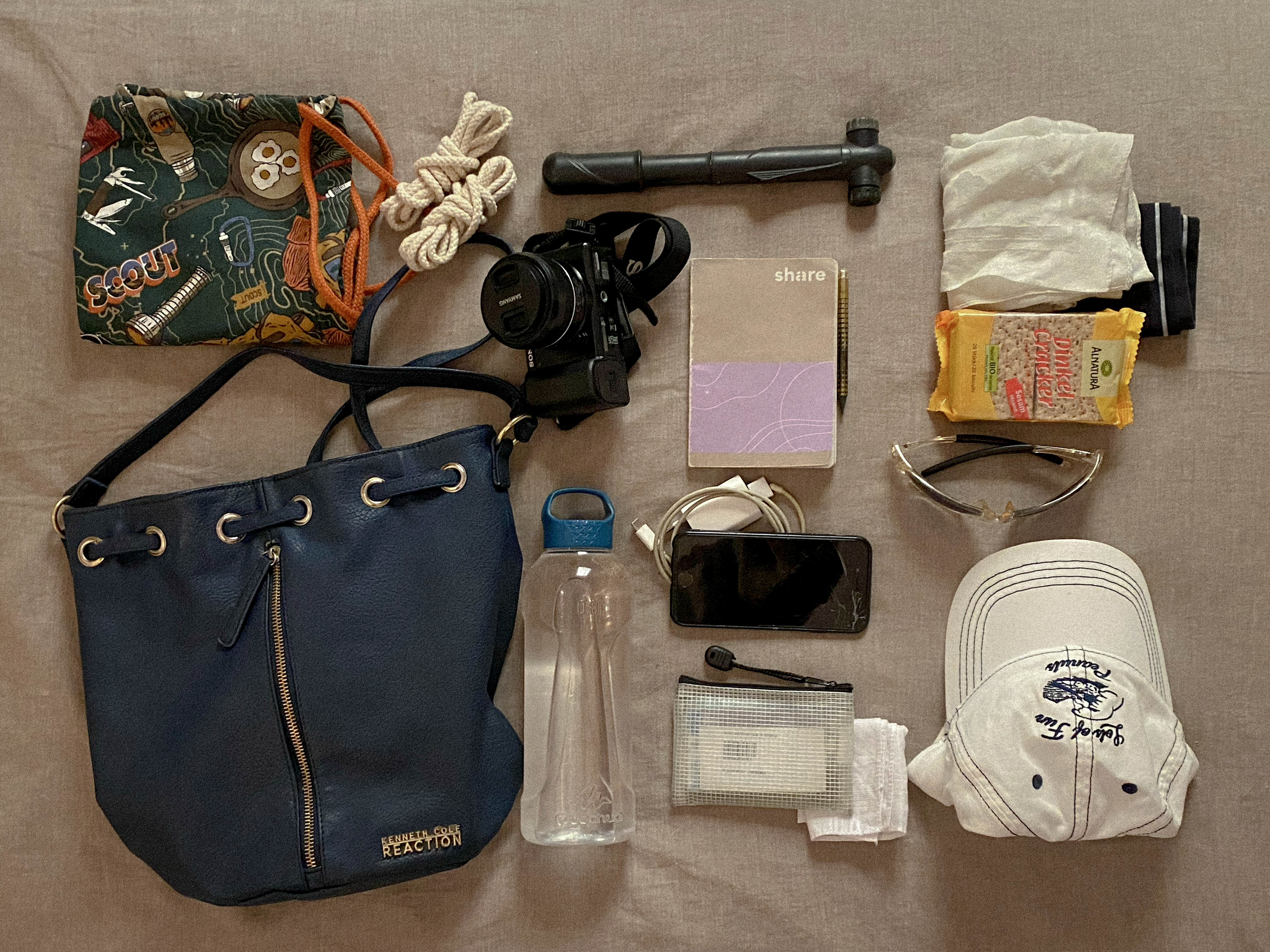 Tagesgepäck. Es fehlen: 1 gekochtes Ei, 1 Banane
