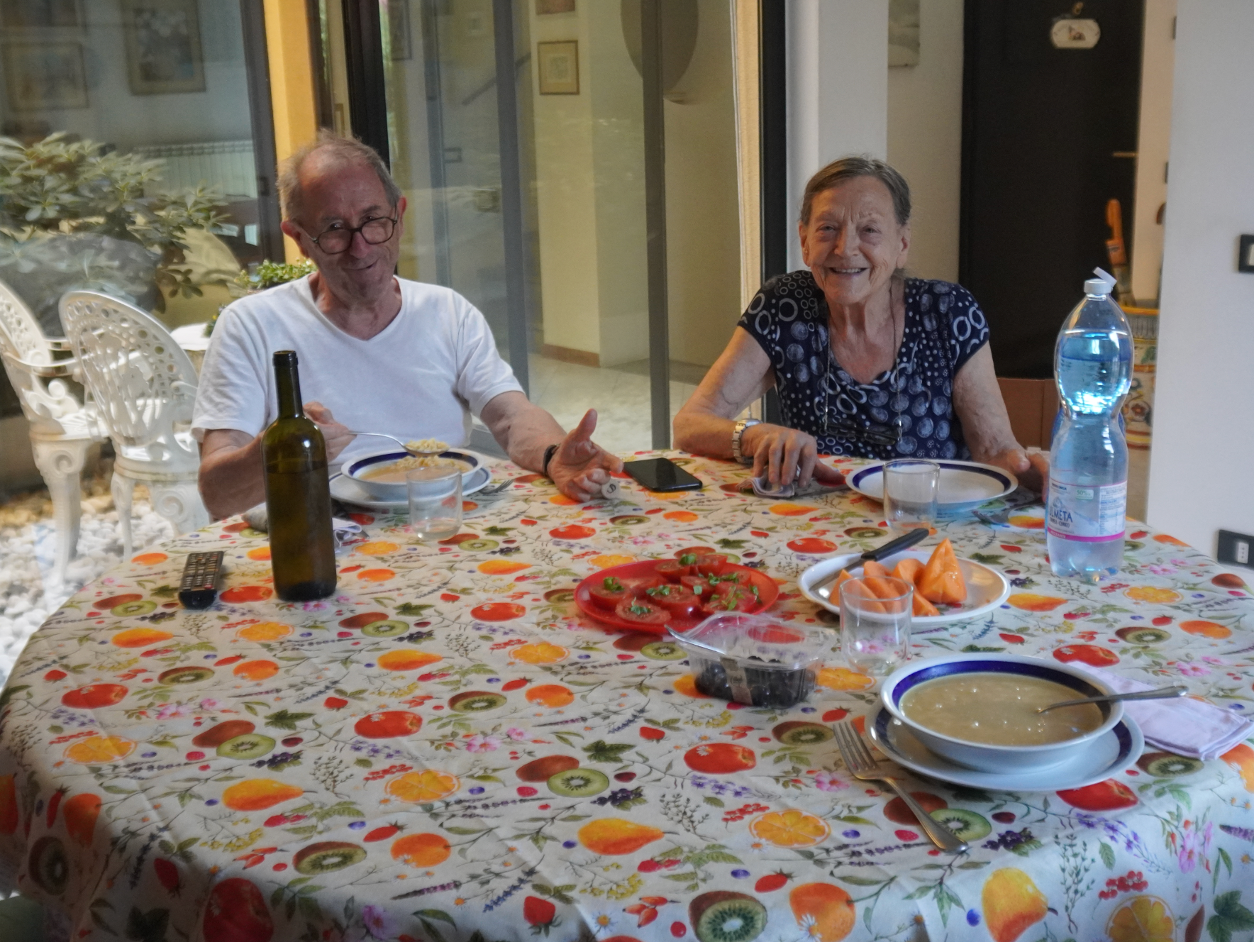 Und dann gibt es direkt Mittag. Eine frische Pasta mit Tomatensugo und Basilikum, danach Tacchino in hausgemachtem Kräutersud aus dem Garten und Bohnen mit Tomatenpesto. Dazu Brot, Wasser und Wein. Ich genieße. Was ich für Pläne habe, fragt Graziella, was ich sehen möchte. Ich bin ehrlich. Meine erste Priorität ist es in diesen beiden Tagen die beiden zu sehen und im Garten zu sitzen.